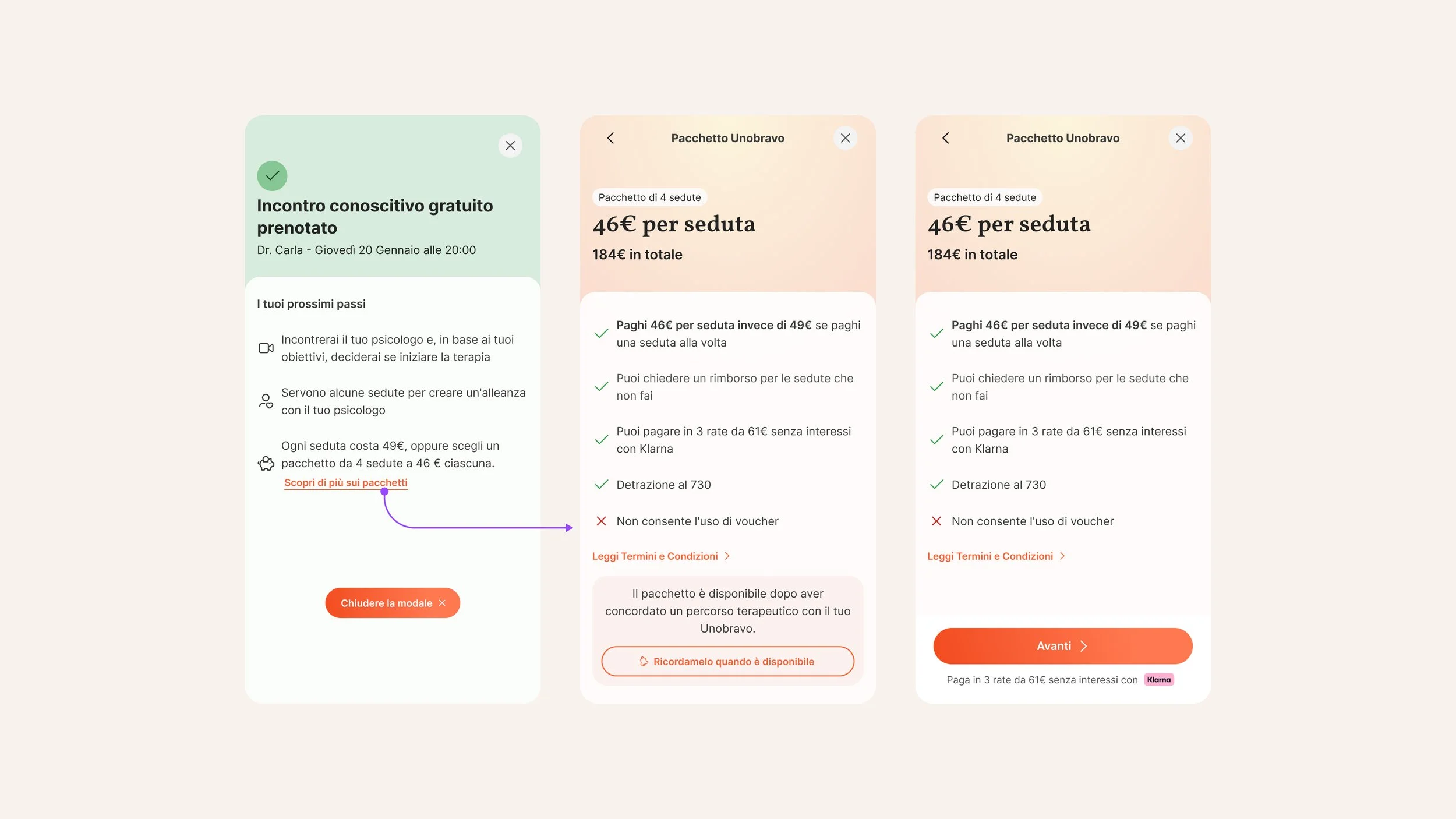 ๐ A: Rather than interrupting the confirmation flow with a paywall, we chose to contextualize the bundle at a more natural moment. The offer is now presented on the thank-you page, when users have already confirmed their session and are beginning to get familiar with the service.